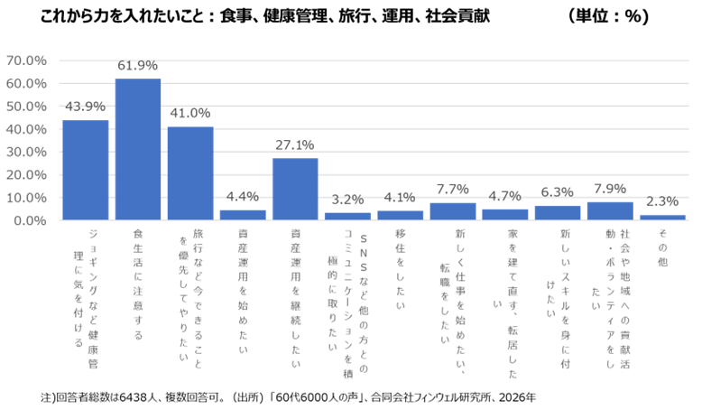 これから力を入れたいこと:健康、旅行、資産運用、社会貢献